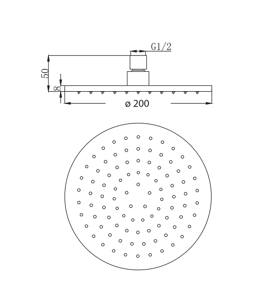 Κεφαλή ντουζ Linz, διαμέτρου Ø20cm σε χρώμα brushed matt black μαυρο βουρτσιστό και ματ υφή, από την Piccadilly.