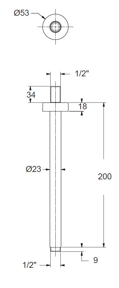 Βραχίονας τοίχου για στήριξη κεφαλής ντους, μήκους 40cm σε brushed matt black βουρτσιστό μαύρο χρώμα και ματ υφή, από την Piccadilly.