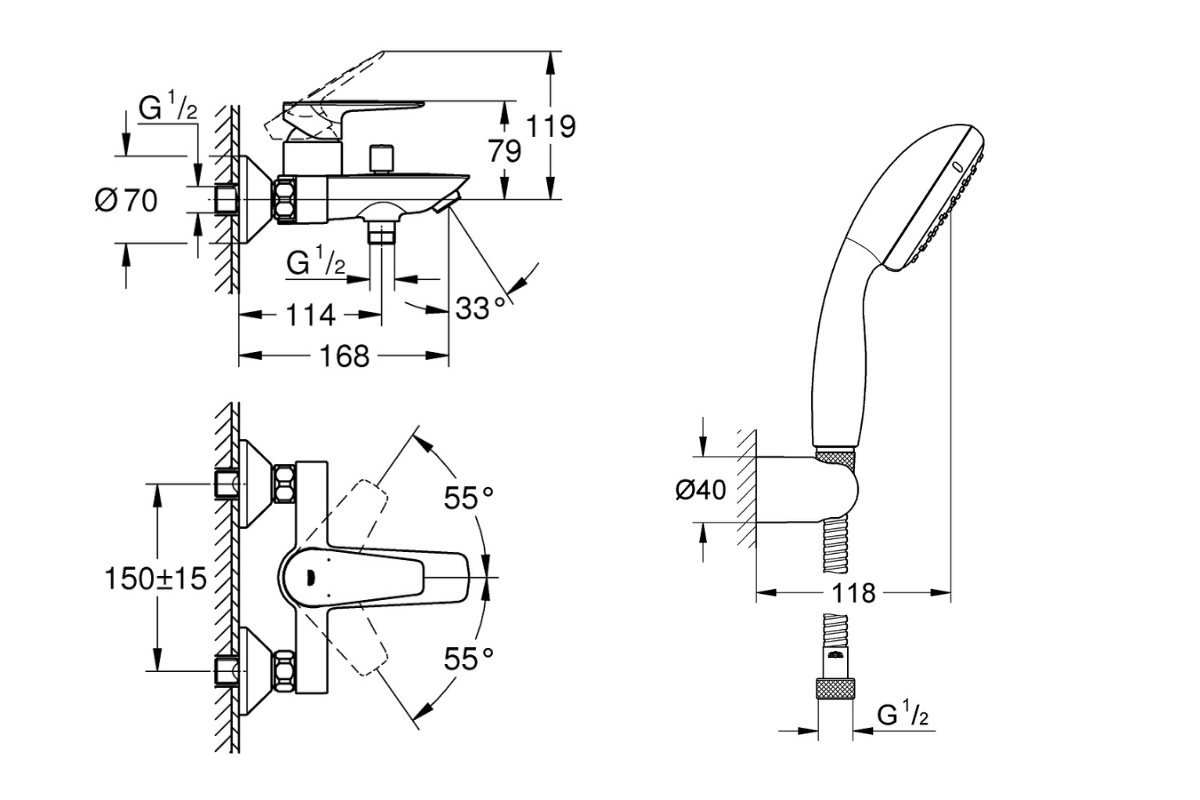 Επίτοιχη μπαταρία λουτρού σετ Bauedge από την Grohe.