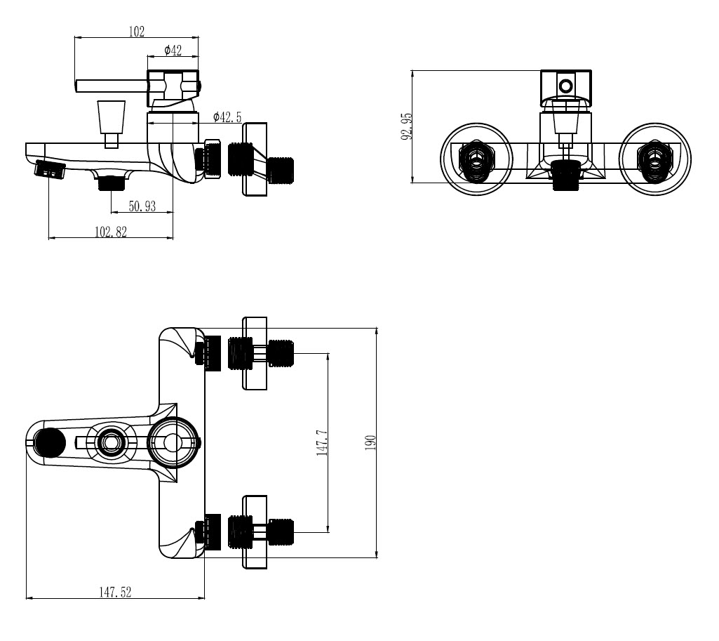 Επίτοιχη αναμικτική μπαταρία λουτρού σετ MM Piccadilly, σε χρωμέ φινίρισμα υψηλής ποιότητος.