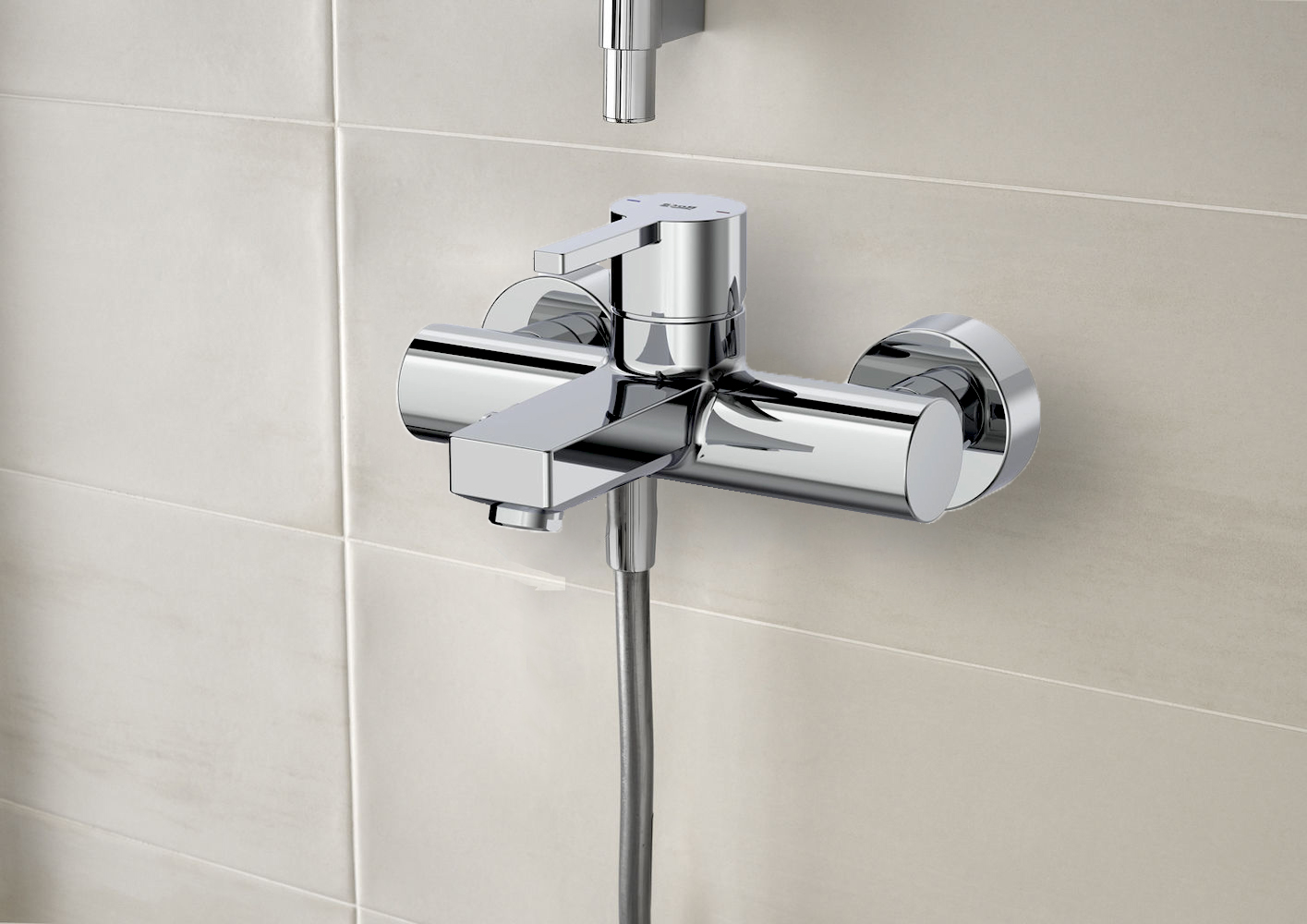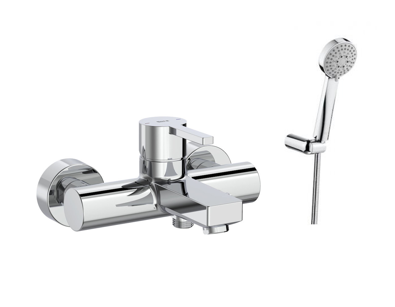 Επίτοιχη αναμικτική μπαταρία λουτρού σετ Naia σε χρωμέ φινίρισμα από τη Roca.