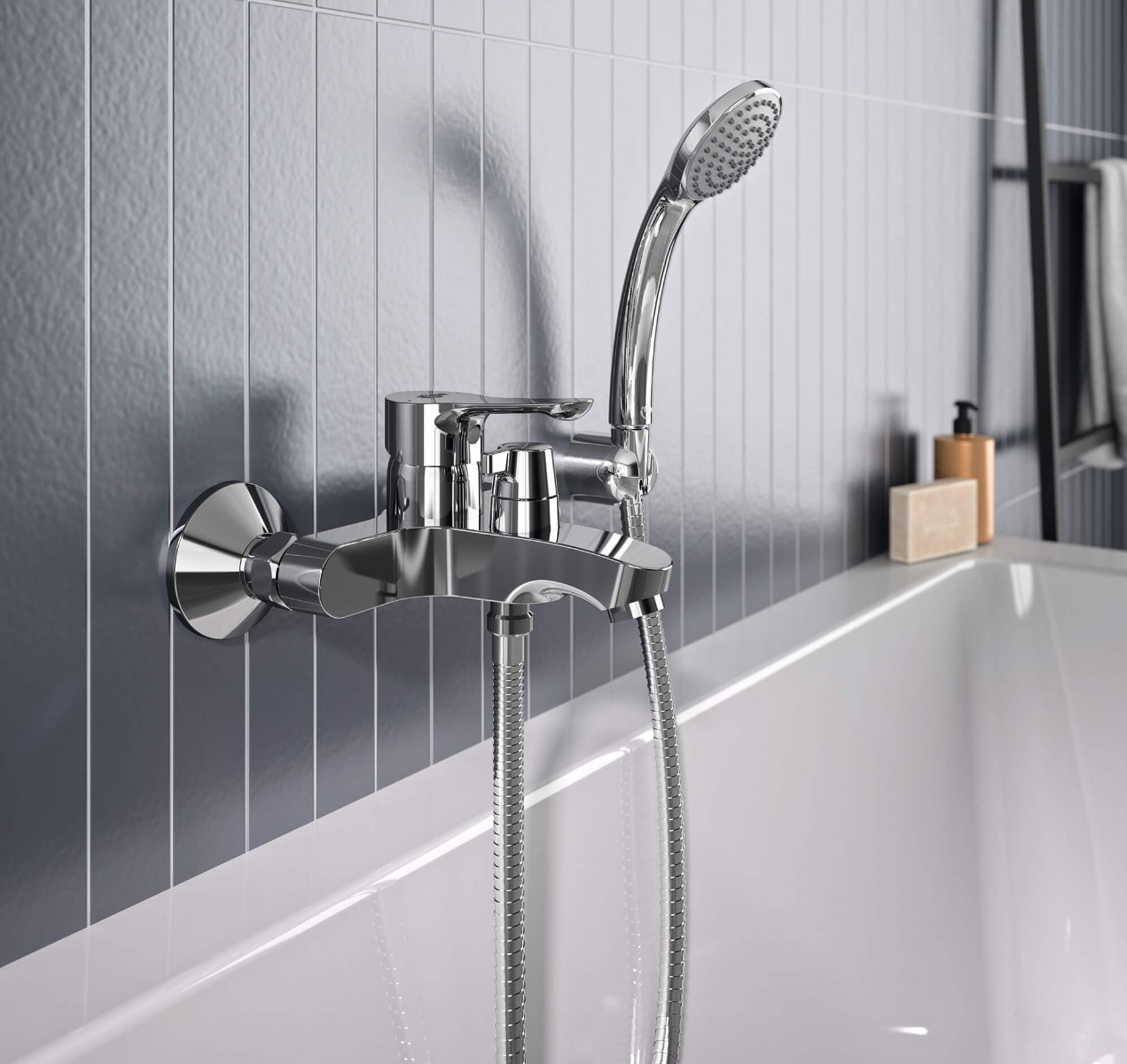 Επίτοιχη αναμικτική μπαταρία λουτρού σετ Alpha Ideal Standard, με μηχανισμό Click technology,