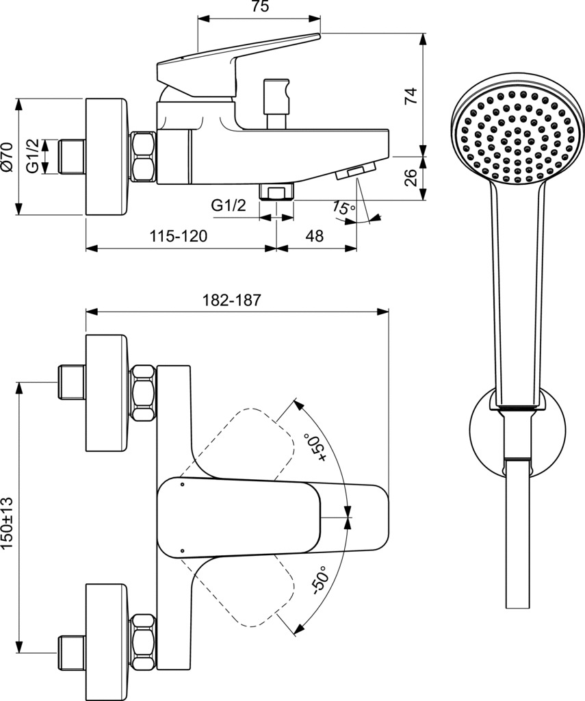 Επίτοιχη αναμεικτική μπαταρία λουτρού σετ Ceraplan Ideal Standard
