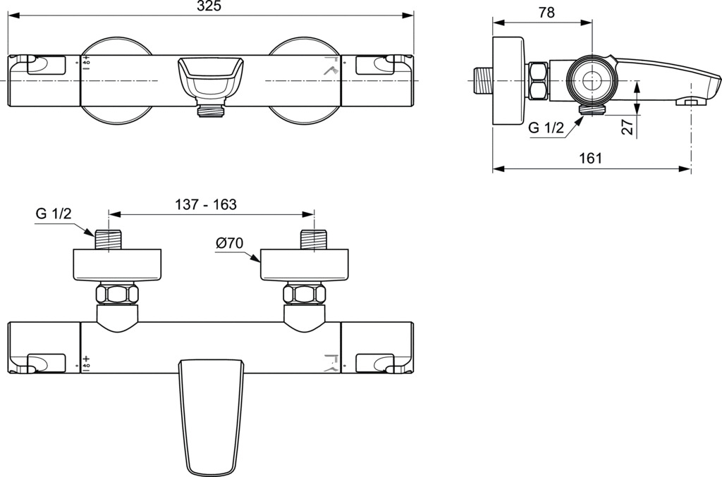 Επίτοιχη θερμοστατική μπαταρία λουτρού Ceratherm O θερμοστατική χρωμέ Ideal Standard.