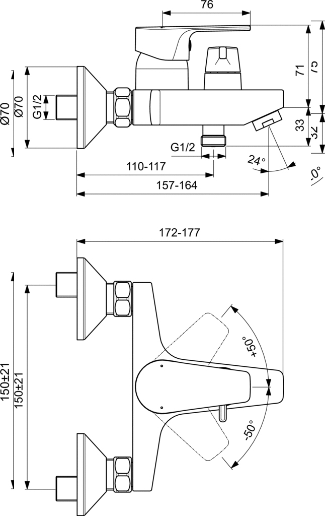 Επίτοιχη αναμικτική μπαταρία λουτρού σετ Cerafine D Ideal Standard,