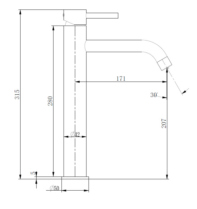 Μπαταρία νιπτήρος υψηλό ρουξούνι ΜΜ Piccadilly χρωμέ.