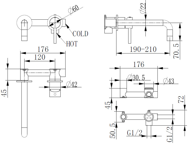 Μπαταρία νιπτήρος τοίχου ΜΜ εντοιχιζόμενη μπρονζέ Piccadilly.