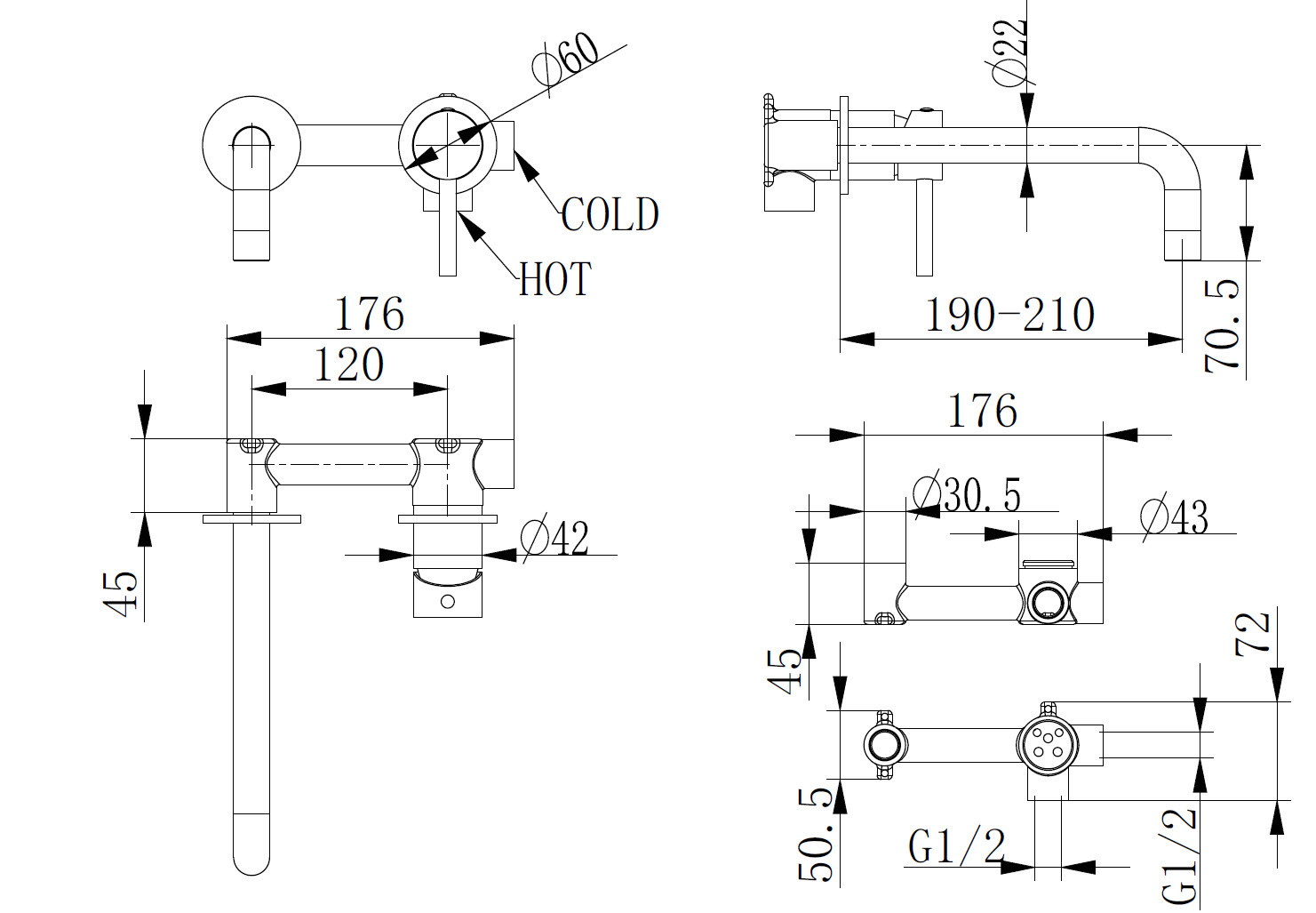 Μπαταρία νιπτήρος τοίχου ΜΜ εντοιχιζόμενη Nickel Brushed Piccadilly.