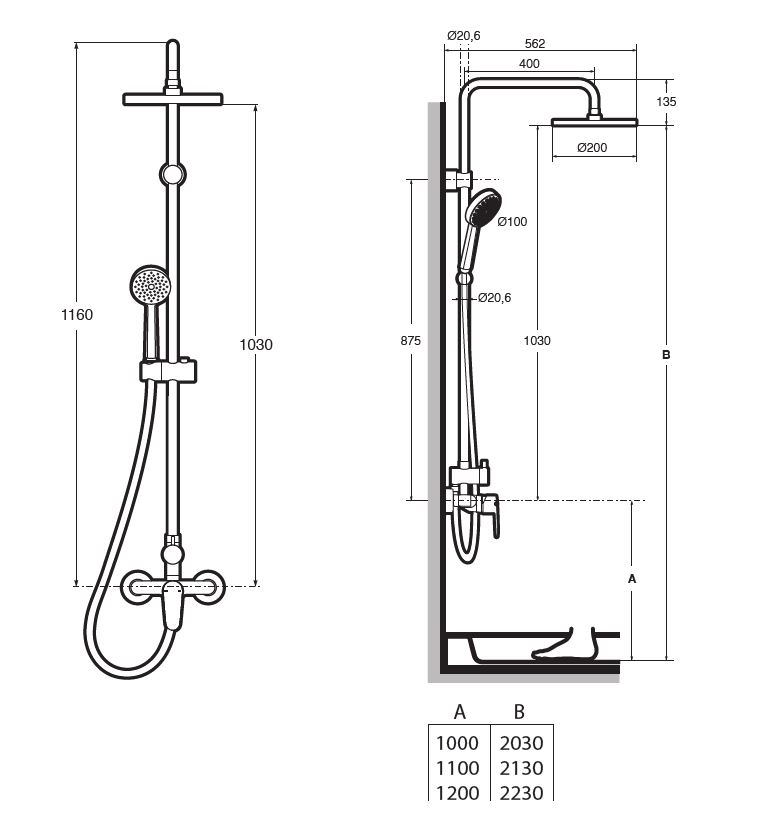 Στήλη ντουζ χρωμέ με μπαταρία, ολοκληρωμένο σετ Victoria by ROCA.