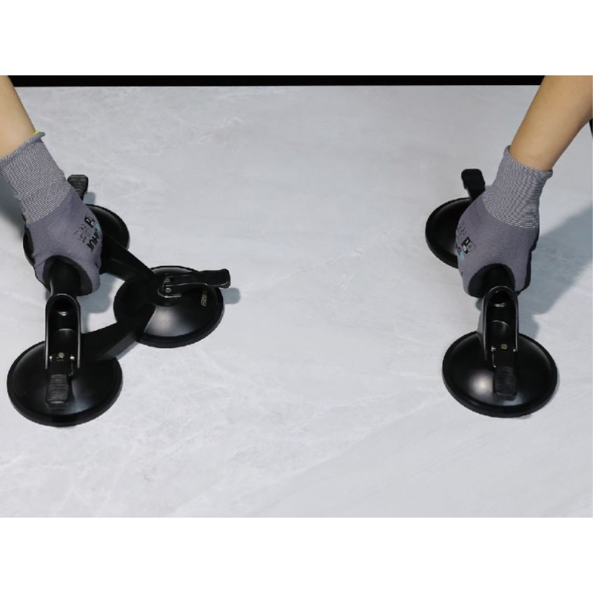 Βεντούζα διπλή με δυνατότητα ανύψωσης 85 κιλών από τη BIHUI. Κατασκευασμένο από αλουμίνιο με λαστιχένια βεντούζα. Εργονομική λαβή Jumbo και κουμπιά στερέωσης άνεσης. Ιδανικό για μεταφορά κεραμικών πλακιδίων, μαρμάρου και γυαλιού.