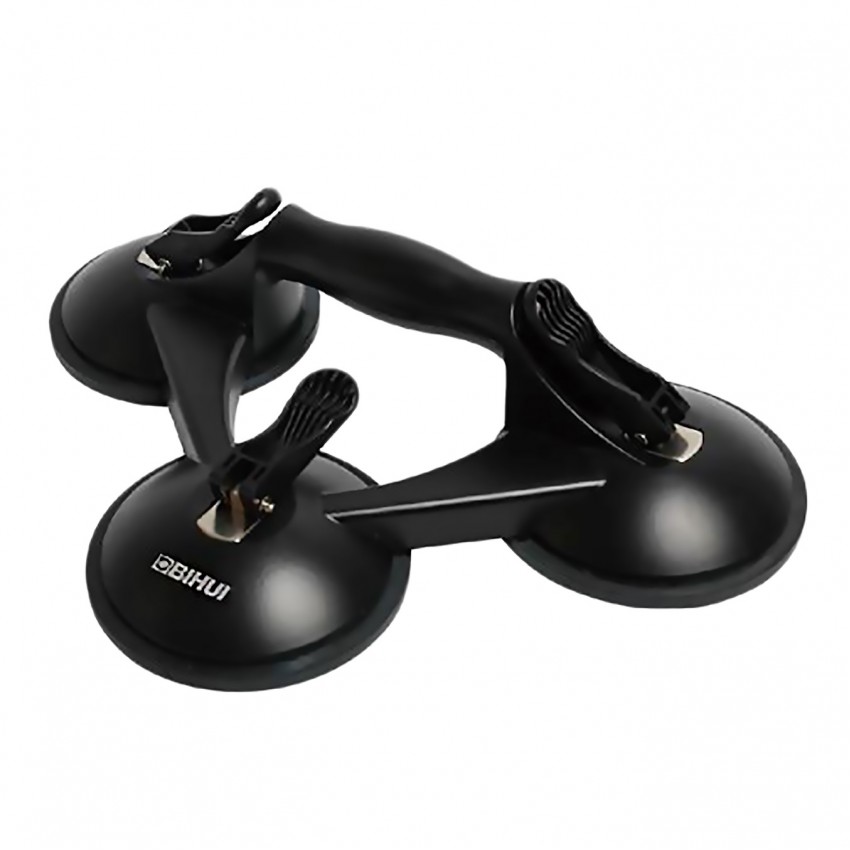 Βεντούζα τριπλή με δυνατότητα ανύψωσης 110 κιλών από τη BIHUI. Κατασκευασμένο από αλουμίνιο με λαστιχένια βεντούζα. Εργονομική λαβή Jumbo και κουμπιά στερέωσης άνεσης. Ιδανικό για μεταφορά κεραμικών πλακιδίων, μαρμάρου και γυαλιού.