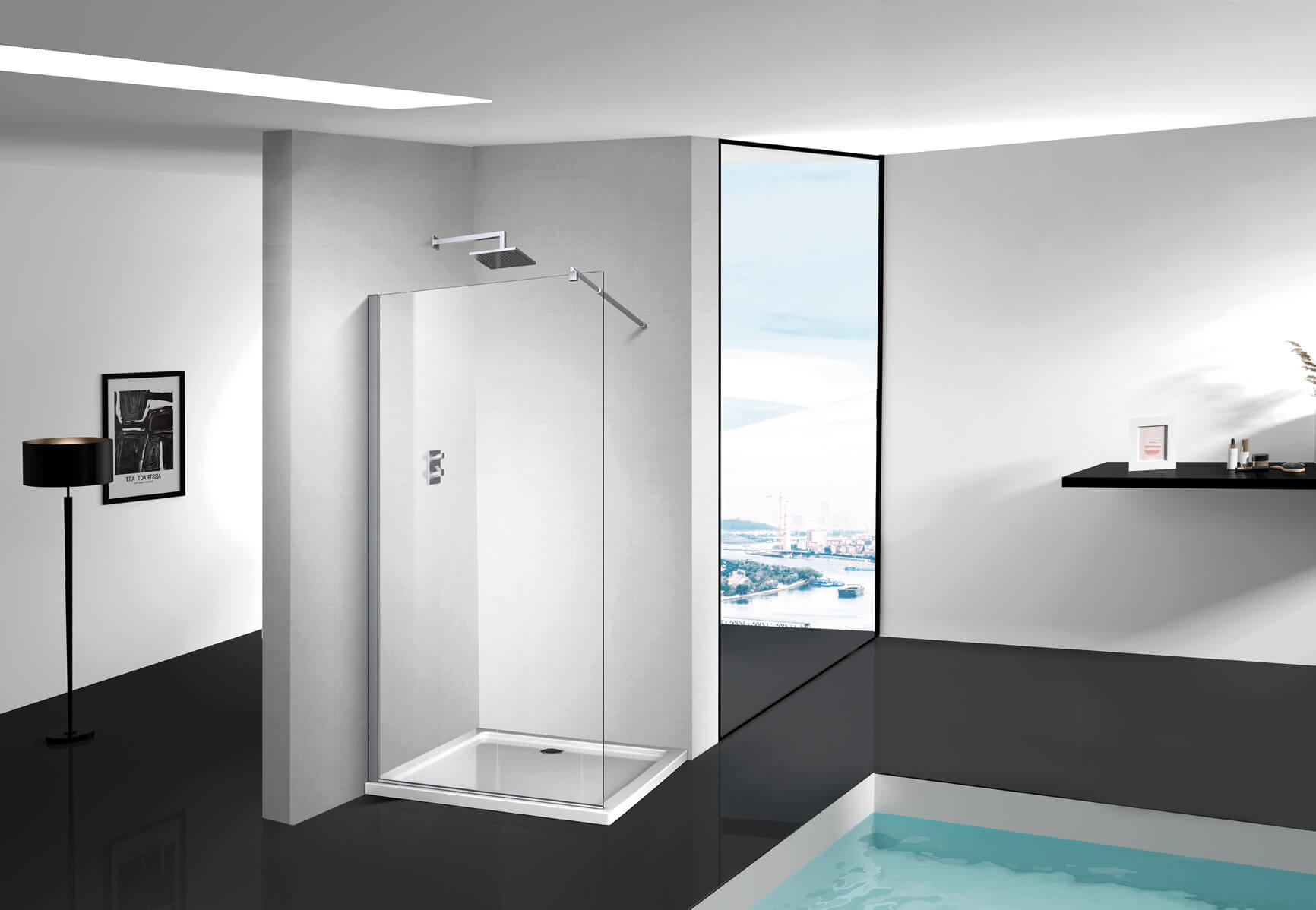 Κρυστάλλινη καμπίνα ίσια, σταθερή, για τοποθέτηση ανάμεσα στον τοίχο.
