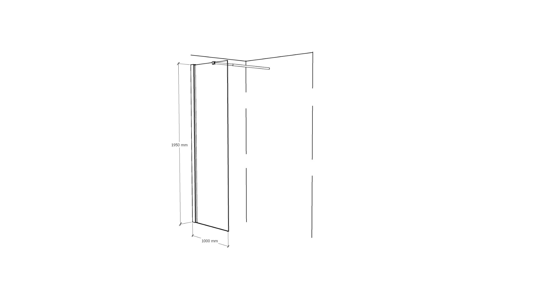 Κρυστάλλινη καμπίνα ίσια, σταθερή, για τοποθέτηση ανάμεσα στον τοίχο.