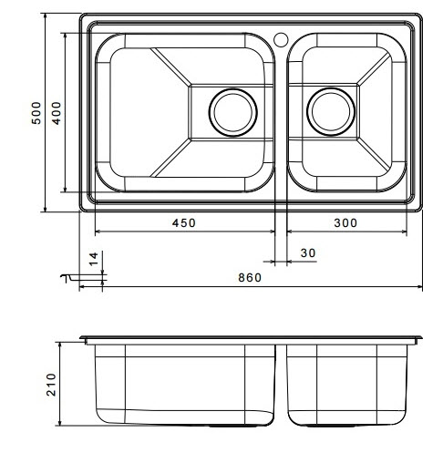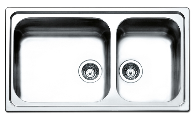 Ένθετος σαγρέ νεροχύτης μη αντιστρφόμενος, από ανοξείδωτο χάλυβα AISI 304 18/10 με 2 γούρνες.