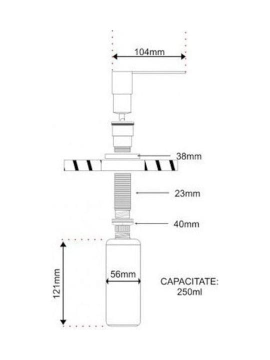 Αξεσουάρ νεροχύτη- σαπουνοδιανομέας μεταλλικός με χωρητικότητα 250ml και χρωμέ φινίρισμα. Προσαρμόζεται στον πάγκο ή στην κουζίνα.