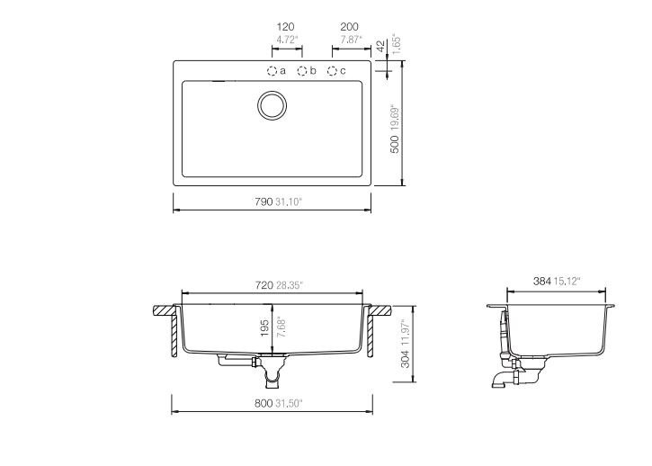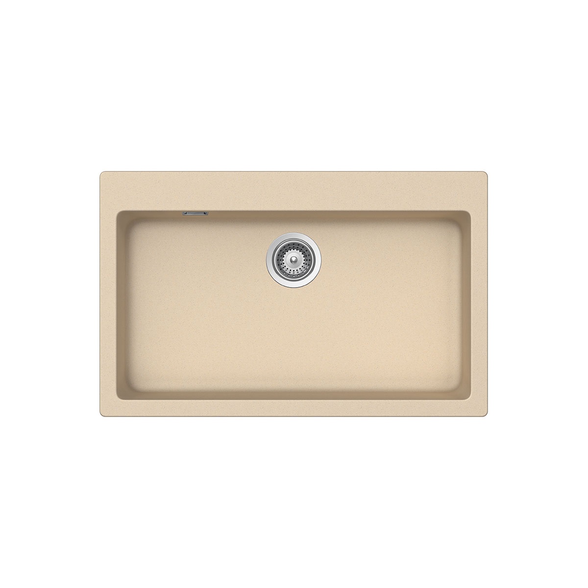 Νεροχύτης κουζίνας ένθετος από φυσικό χαλαζία με μία γούρνα. Με 3 προχαραγμένες οπές και δυνατότητα τοποθέτησης dispenser.