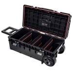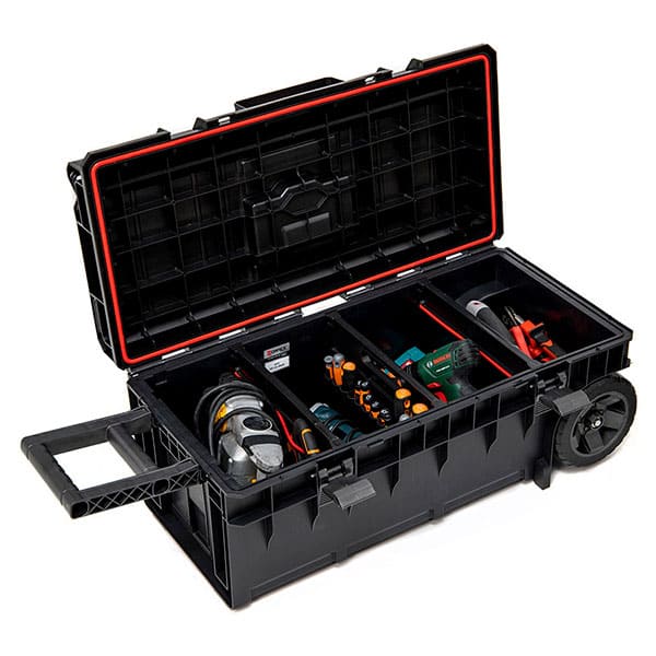 - Είναι εξοπλισμένο με τρία ρυθμιζόμενα διαμερίσματα – δύο με ελαστικούς ιμάντες και ένα Multi διαμέρισμα, το οποίο καθιστά εύκολο να διατηρείται το εσωτερικό του κουτιού τακτοποιημένο χάρη στις διαφορετικές βάσεις για εργαλεία χειρός.