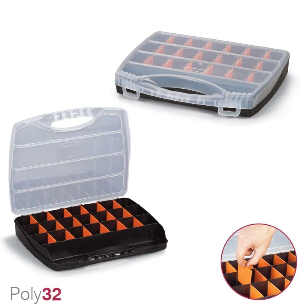 Poly 32 Εργαλειοθήκη ταμπακιέρα κατάλληλη για την αποθήκευση, την οργάνωση, την τακτοποίηση και την μεταφορά μικρών αντικειμένων.
