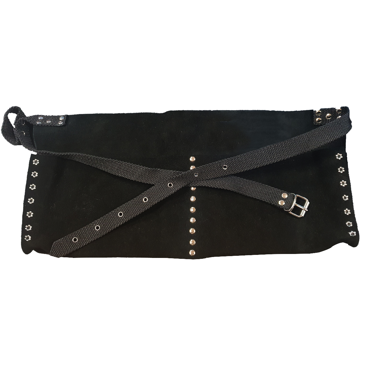 Κατασκευασμένη από γνήσιο δέρμα με μαύρη/καφέ απόχρωση, η ποδιά διαθέτει ενισχυμένα μεταλλικά περτσίνια στις ραφές, προσφέροντας μέγιστη αντοχή στη χρήση.