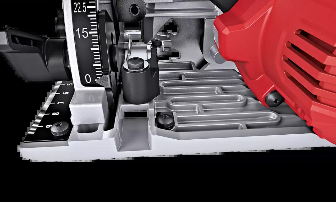 - Ο μετρητής βάθους κοπής είναι εύκολα ορατός στην οπτική γωνία του χρήστη και έτσι επιτρέπει γρήγορες ρυθμίσεις κοπής