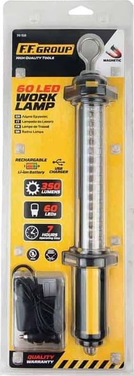 Επαναφορτιζόμενος φακός LED της F.F. Group, κατάλληλος για χρήση σε χώρους εργασίας όπως το συνεργείο. Tροφοδοτείται μέσω της θύρας USB και μέσω του φορτιστή. Η μέγιστη ισχύς της φωτεινότητάς του φτάνει έως 350lm. Λόγω του μαγνήτη που διαθέτει, μπορεί να στερεωθεί σε μεταλλικές επιφάνειες και να σας διευκολύνει σε διάφορες εργασίες. Είναι ανθεκτικός στο νερό, καθώς διαθέτει πιστοποίηση αδιαβροχοποίησης IPX4.