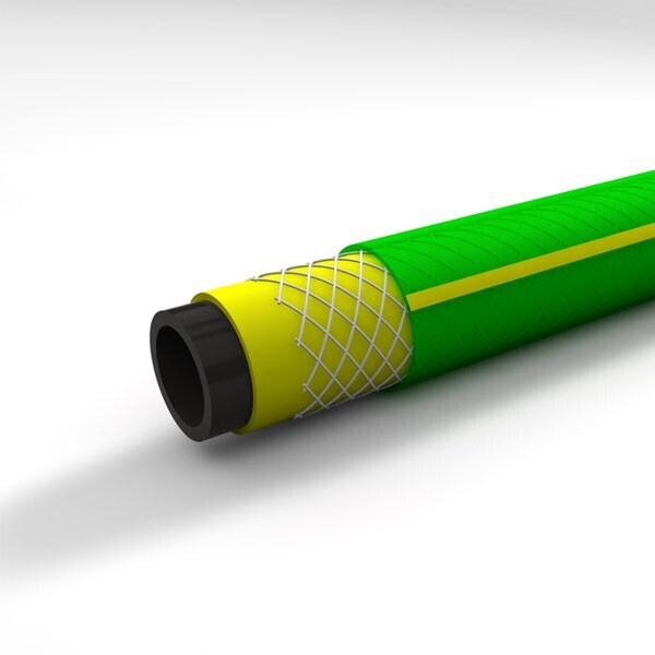 Ενισχυμένο λάστιχο κήπου με πλέγμα, κατάλληλο για ερασιτεχνική χρήση. Διαφανές λαμπερό πράσινο χρώμα με κίτρινη