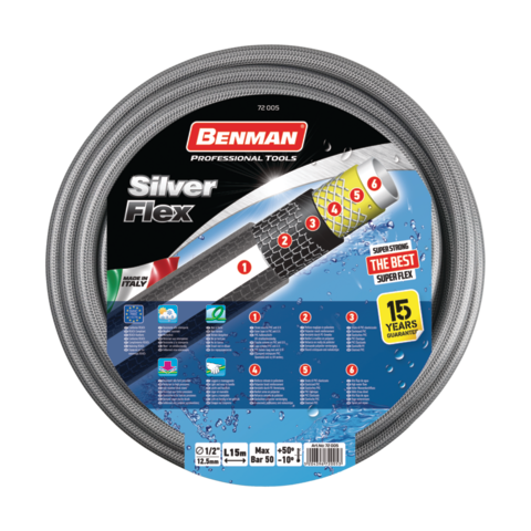 ΛΑΣΤΙΧΟ SILVER FLEX 1/2”x25m, BENMAN ( ΓΚΡΙ & ΛΕΥΚΗ ΡΙΓΑ)