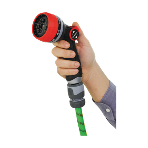 - Ρυθμιζόμενο στόμιο με 7 μοτίβα ψεκασμού: κωνικό, ομίχλης, φυσαλίδες, με πίεση, επίπεδο, κεντρικό, απαλό