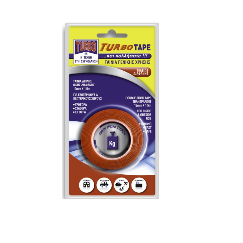 TURBO-TAPE ΔΙΠΛΗΣ ΟΨΕΩΣ 19mmx10m ΔΙΑΦΑΝΗΣ BLISTER