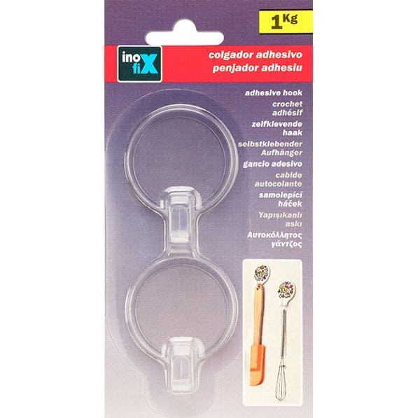 Άγκιστρο τοίχου, της εταιρίας Inofix, διάφανο. Είναι κατασκευασμένο από ανθεκτικό πλαστικό. Διαθέτει μία θέση στήριξης πετσέτας και μπορείτε να το στερεώσετε στα πλακάκια του τοίχου ή σε οποιαδήποτε λεία επιφάνεια με την κολλητική ταινία που διαθέτει.
