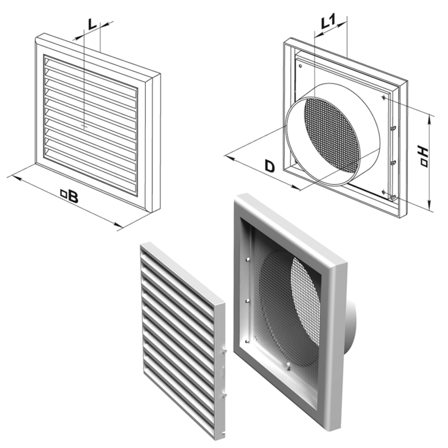 ΠΕΡΣΙΔΑ ΕΞΑΕΡΙΣΜΟΥ Φ150mm187Χ187mm ΛΕΥΚΟ με ΣΗΤΑ