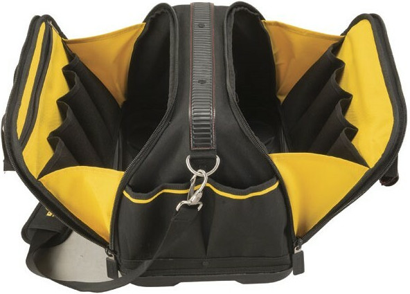 - Στιβαρή κατασκευή με σκληρό διαχωριστικό μεταξύ των δύο τμημάτων, που επιτρέπει στην τσάντα να στέκεται όρθια παρέχοντας σας εύκολη πρόσβαση στα εργαλεία
